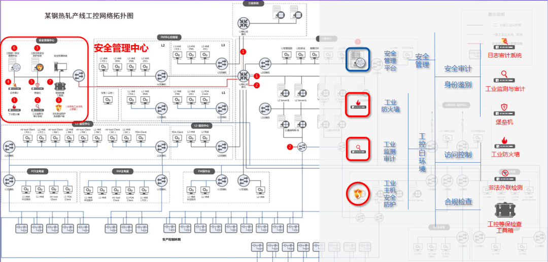 ▲ 某钢厂热轧产线工控网络拓扑图